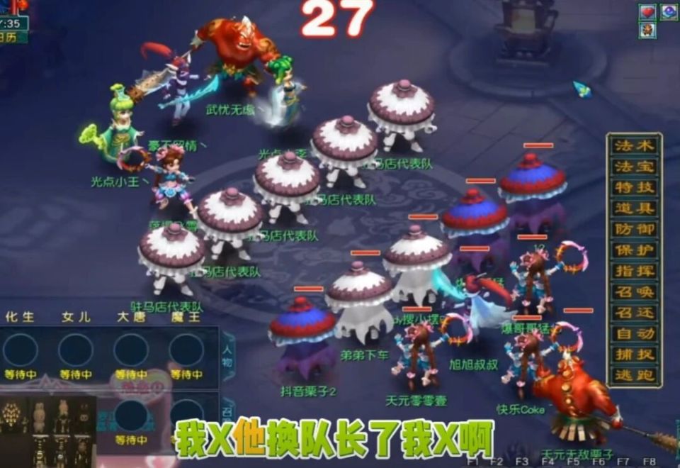 而齐天这边也同样高能不断!比赛进入最后几分钟,宝哥队的积分略低于路大叔队。这时候,路大叔队点了一个单人战斗,故意拖延时间不肯出来。宝哥队里那位“初九的军师”灵机一动,想出一个神操作:让宝哥队主动散队,“自己打自己”!原来周三的比武规则是必须“死两次”才能离场,他们利用这个机制,分成3打2的两边,各赢一场赚积分,这样全队总分就能反超路大叔。