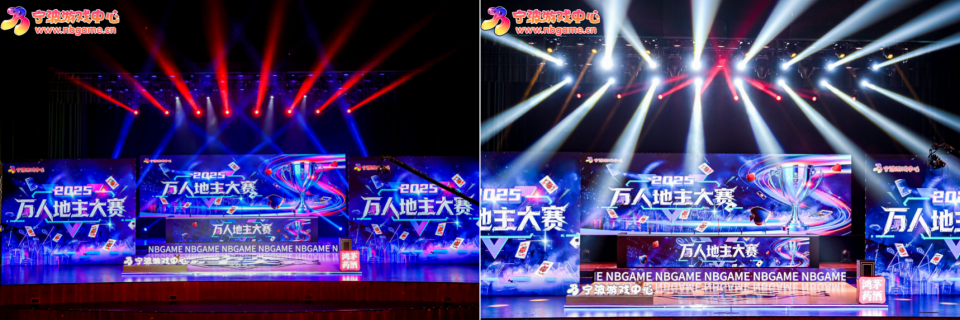 赛事进程中,亮点纷呈、精彩不断。线上突围赛阶段,选手们隔着屏幕展开脑力与手速的较量,精准叫牌、巧妙记牌、灵活出牌的精彩操作频频上演,直播间实时弹幕互动热烈,累计观看人次突破百万;线下晋级赛及总决赛则氛围更为火爆,一个月内,超过万名选手怀揣对斗地主的热爱踏上征程 —— 从线上每天海选坚持不懈,到线下直通赛的热情满满,再到64强淘汰赛的捉对厮杀,每一场对决都书写着智慧与勇气的传奇!最后,站在宁波大剧院的决赛舞台,16位选手将为宁波地主年度最高荣誉展开终极较量!超高规格的电竞比赛舞台,顶级电竞转播模式,可以说是打开斗地主的全新模式。无论是选手还是观众亦或是线上直播间粉丝都被这样的“万人地主大赛”全新模式所震惊!