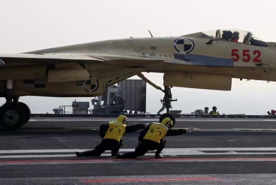 2023年4月,歼15随同海军山东舰航母编队通过台湾海峡。其间,突然遭遇外机抵近侦察,4架歼15挂弹起飞执行任务。