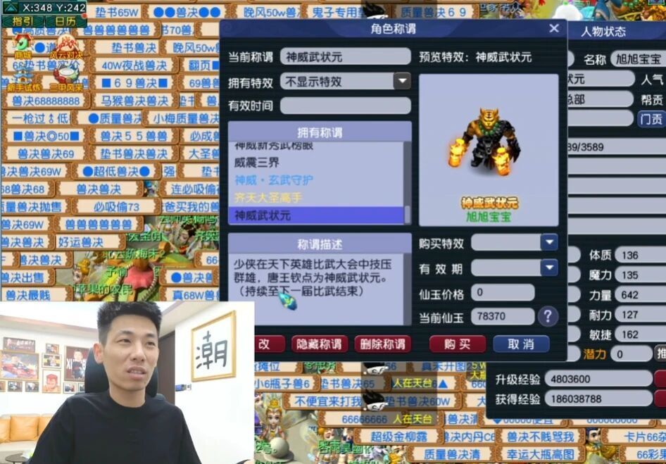 旭旭宝宝在齐天大圣服务器的成就有目共睹。他不仅拥有一身极品装备,更在89级新手比武中斩获冠军,其实力毋庸置疑。