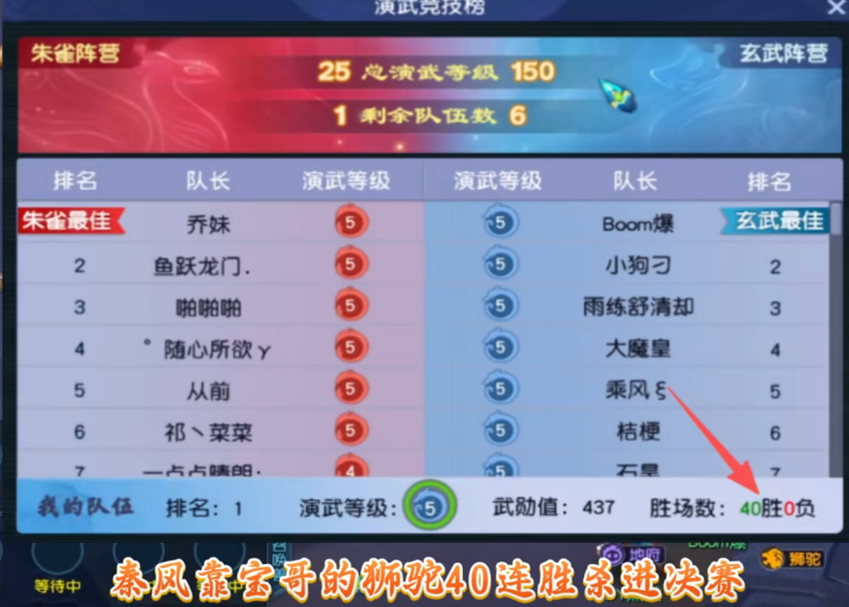而真正的高潮还在后面。在秦风的精密指挥下,宝哥与爆总的队伍一路高歌猛进,豪取40连胜的惊人战绩,毫无悬念地以第一名的身份挺进决赛!