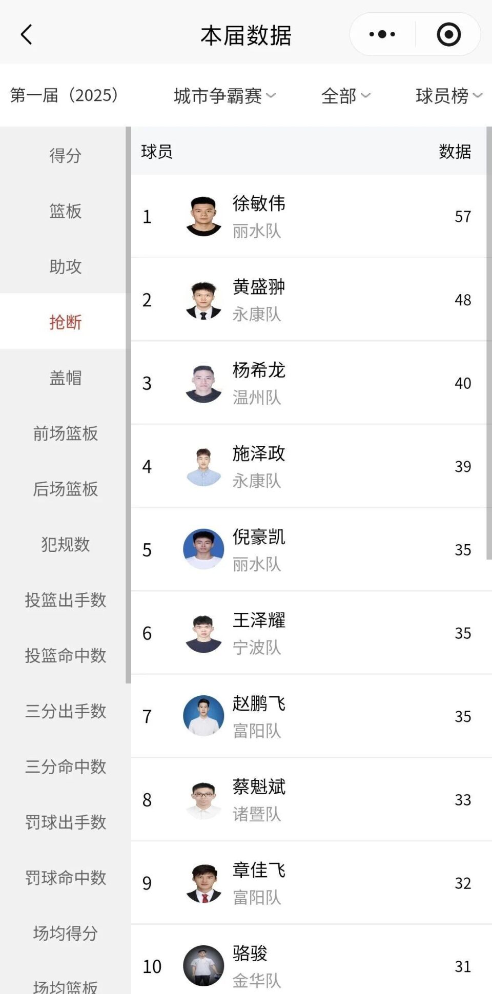 然而,身后的追兵丝毫未见松懈!丽水队与苍南队同以11胜3负积25分的战绩,与富阳队形成了“第一集团”的鼎立之势。而永康队(10胜3负,23分)作为“巨人杀手”,仍是不可小觑的第四极力量。B组榜首之争,注定要持续到最后一刻。
