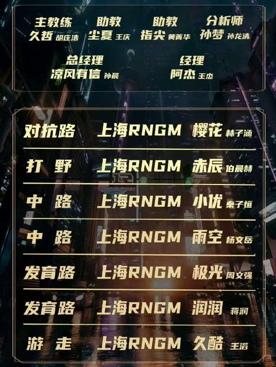 RNGM大名单终于是有点豪华起来了,找来了久哲当主教练。引进久酷赤辰小优雨空润润,预计雨空和润润会成为首发。新资本入场,挑杯还不会改名,春季赛应该就会更名了。这个阵容感觉起码是可以脱离B组的,但他们这次挑杯签运不太好,和AG再一个分组,还是很难进入八强,但第一轮赢下XYG应该问题不大。