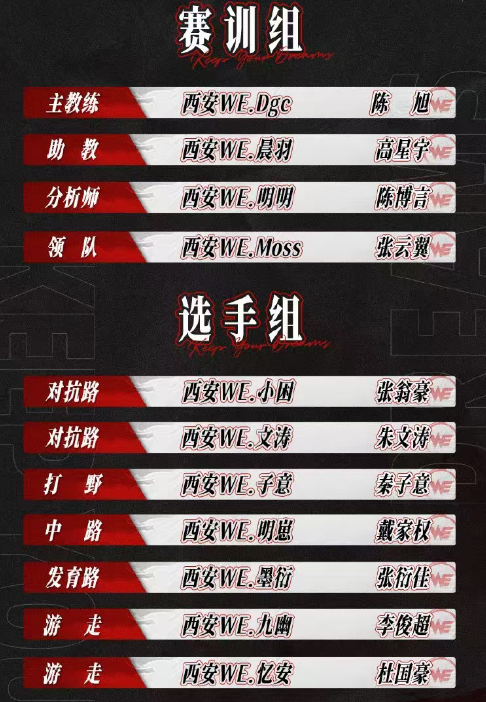 WE作为一支常年B组的战队,和夏季赛相比,这次大名单所有选手全换了,主打一个重组,忆安转辅助也来了。全新组队到底什么水平很难说,但WE从来都没有强队基因,我很难看好这样一直队伍,而且他们还和狼队在一个分组,基本进不了八强。