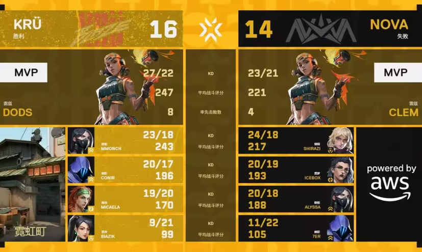 在上半场巨大落后的情况下,NOVA必须在下半场一口拿到连胜才能扳回局势。但KRU在下半场赢下图二的手枪局后,几乎粉碎NOVA翻盘希望,尽管对手在eco局勉强扳回两分,但上半场的巨大分差已成定局。最终KRU以13-4轻取对手,总比分2-0完成晋级。