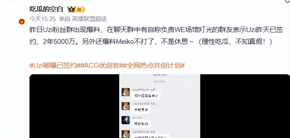 2年5000万,IG真舍得,uzi被曝已签约上热搜