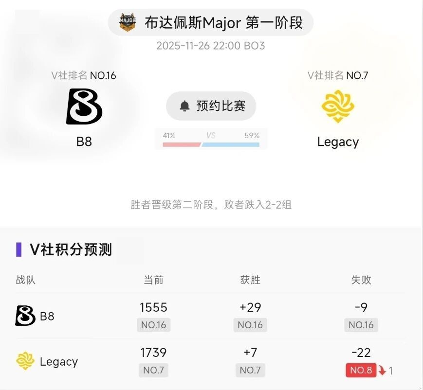 总体上还是更看好Legacy,有一图先手优势,状态也明显胜于B8。
