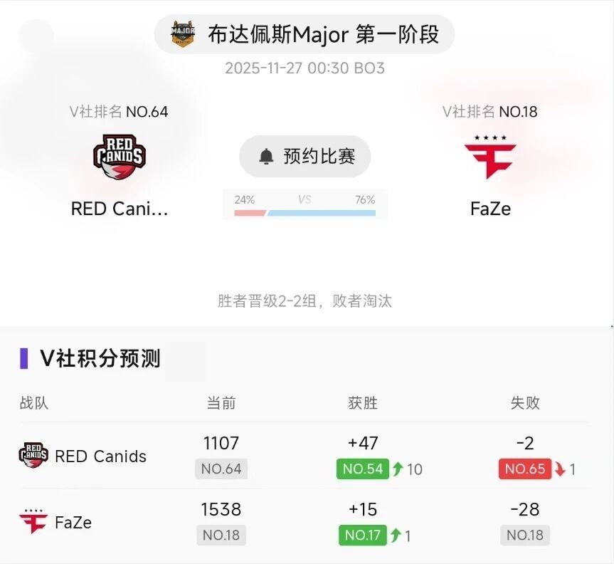 不要只看两队的表面支持率,拳怕少壮,本场对阵有可能是本次Major开赛以来FaZe遇到最难打的一个对手,只希望老迈的战舰在BO3的场次里拿出点自己的看家本领,否则大概率FaZe将会以1-3的成绩直接出局。