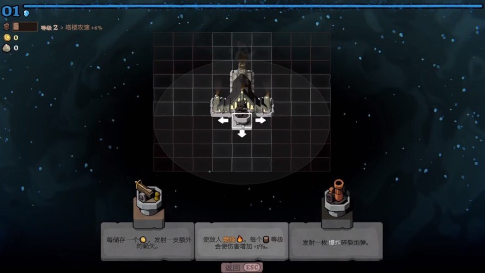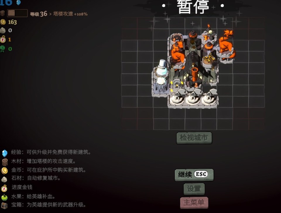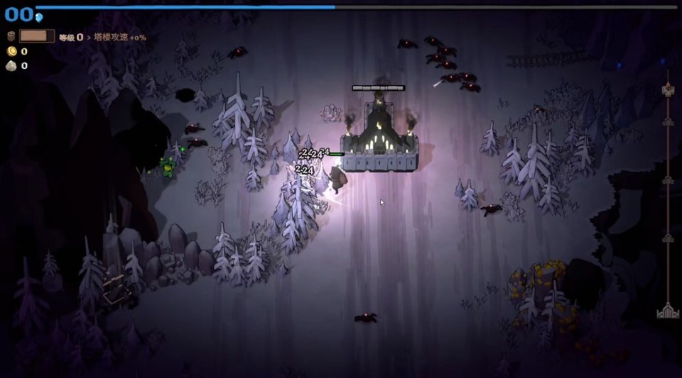 塔楼分为进攻型和功能型,进攻的塔楼可最多升级两次,会获得一定的提升,辅助的塔楼则并不能进行升级,但是可以连携产生效果,几个连着一起放的资源塔可以提升效率,还有增加伤害,加快砍伐的塔楼都很有趣。