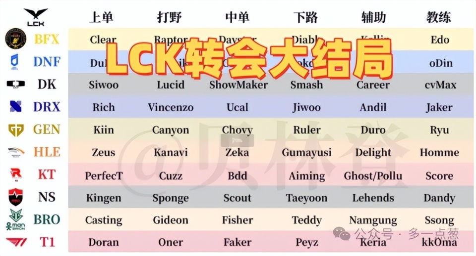 LCK转会大结局,形成两超多强!T1前五都够呛,HLE成为超级战队