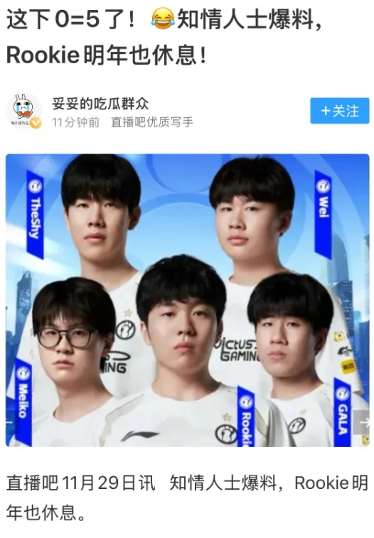 Rookie罢工,不打了!IG濒临破碎,知情人爆出猛料,这下“0=5”了
