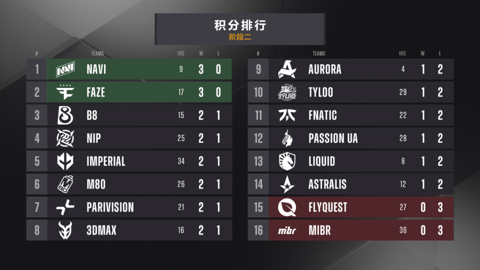 FaZe与NAVI三战全胜晋级第三阶段!TYLOO命悬一线,明天凌晨与液体生死战