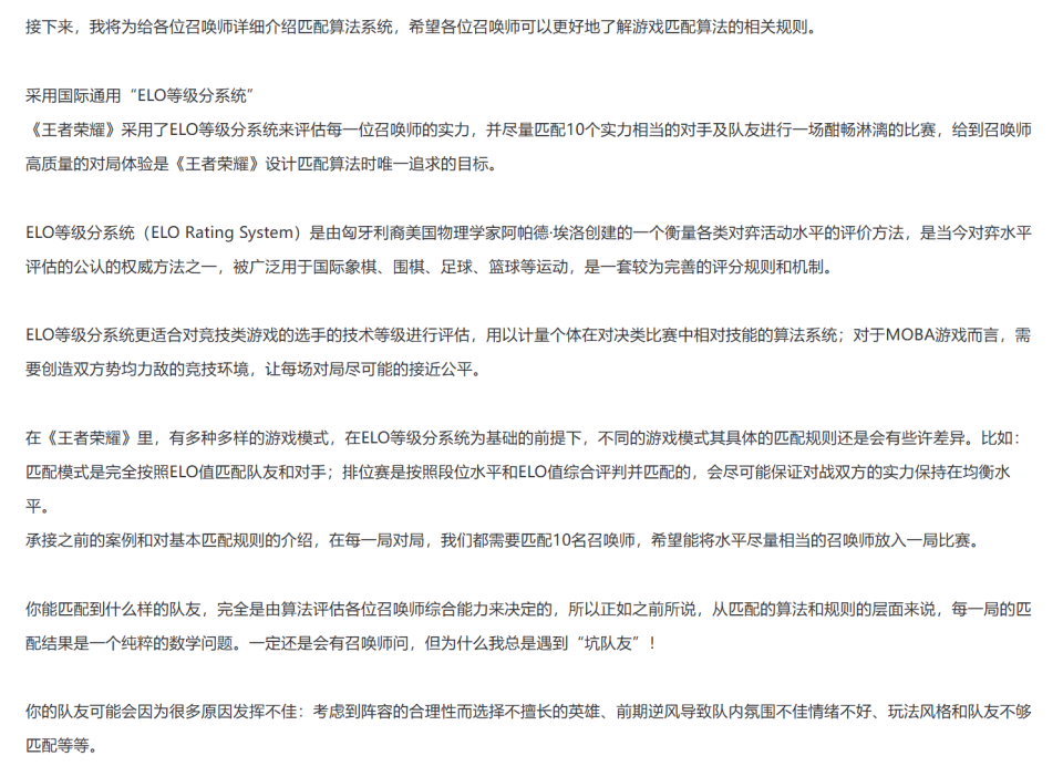 在以往,玩家比起上分艰难,更抵触对局双方水平差距过大的「炸鱼局」情况。而随着游戏环境发生变化、游戏玩家也更新换代,现在越来越多的玩家希望能更自由客观地发挥和评估自己的实力。所以Elo机制的这些缺陷,也是玩家呼声越来越高、越来越希望改进的地方。