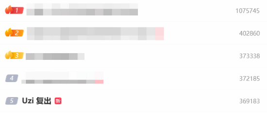 截至发稿,“Uzi 复出”词条已经登上微博热搜前5。