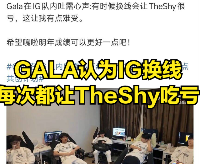 除了IG官方爆料之外,IG选手们在采访期间,也是各种“真情流露”,尤其是AD选手GALA,在纪录片当中专门给IG上单TheShy道歉。GALA认为IG在比赛期间,之所以频繁换线吃亏,就是因为自己的下路对线没有打好,这就导致IG下路只要出现问题,就需要牺牲TheShy来强行换线,而每次换线,都是在耽误TheShy的比赛发育节奏,自己非常愧疚。