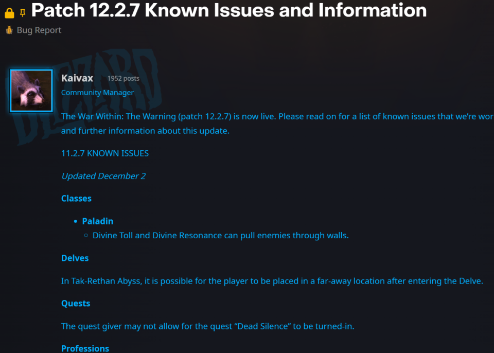 明天新版本太离谱!暴雪发布罕见蓝贴!BUG太多,圣骑变DK!