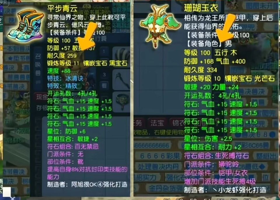 最牛的就是在整个齐天大圣遥遥领先的装备,70级的无级别男头,打了15段的红玛瑙,还附加变身套。70级的无级别鞋子,打了13段黑宝石,还附加变身套。