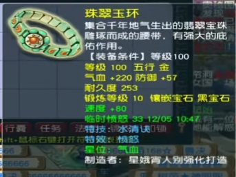 100级的愤怒+水清诀的腰带,防御+57,气血+220.