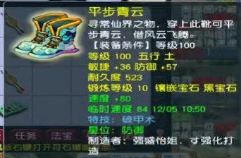 100级的破甲术的鞋子,防御+57,敏捷+36。