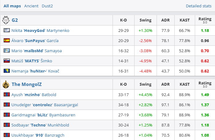 图二Dust2,0-2开局的蒙古队打出一波6-1防守,半场领先两分。换边蒙古队屡屡杀穿G2的A区,长枪局大汗从B洞到B点单局4杀撕碎对手防线。终局大汗再颗秒太阳神,蒙古人一波6-1攻势轻松晋级。