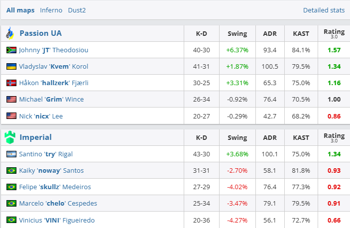 图二Dust2,PUA赢得手枪局5-0开局、防守豪取8分,Kvem、JT和Grim三人半场均两位数击杀。换边巴西队拿下手枪局追至6-8,长枪局nicx和JT完成2V3残局,PUA杀穿巴西队的A区以12-6取得赛点。尽管巴西人顽强追至10-12,但最终还是没能挡住PUA的攻势,黯然离场。
