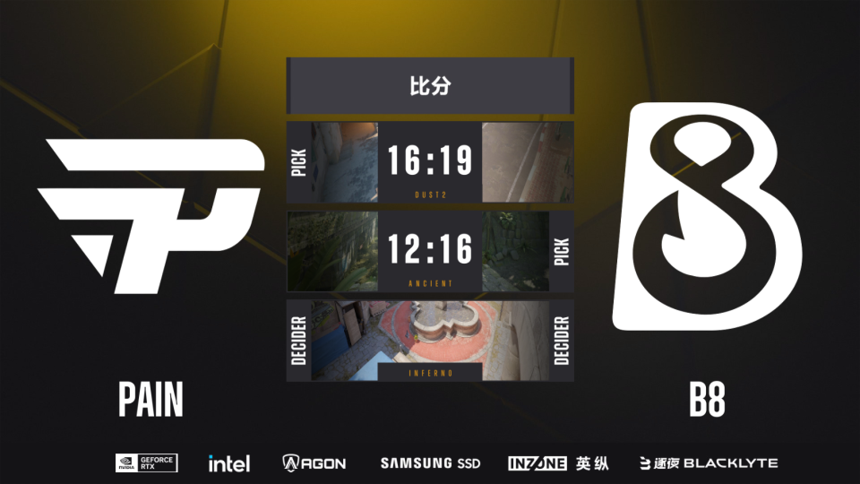 1-2组:paiN 0-2 B8,1胜3负惨遭淘汰
