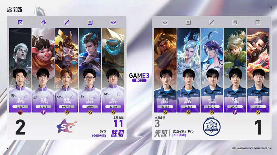 SYG作为全国大赛的冠军,选手们主要是WB的青训,实力都不差的,教练战神健也当过KPL战队的教练。下一场面对青训破军,可能也是身价之战了。