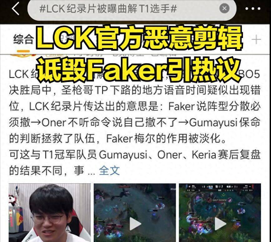 LCK纪录片“迫害”Faker,粉丝怒喷官方恶意剪辑!GEN选手装病