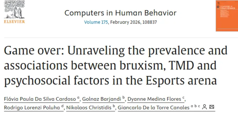 近期发表于《Computers in Human Behavior》的研究《游戏终结:揭示磨牙症、颞下颌关节紊乱与电竞领域社会心理因素之间的流行及关联》,首次对电竞人群中的磨牙症与颞下颌关节紊乱(TMD)进行系统调查,揭示电竞背后的“隐形伤害”。