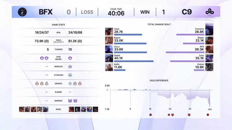 Kespa杯继续进行小组赛第三日比赛,北美C9击败BFX后,以3胜1负锁定小组第二,将进入明日的最后机会组争夺最后一个四强名额。