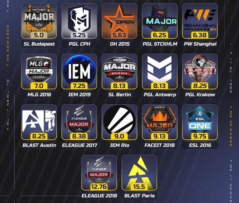 这是一个什么概念?这刷新了PGL哥本哈根Major保持的5.25的纪录,甚至超越了远古时期2015 DreamHack公开赛的5.63。为了更直观地对比,我们可以回看2023年的BLAST巴黎Major——那届赛事的八强平均排名高达15.5。