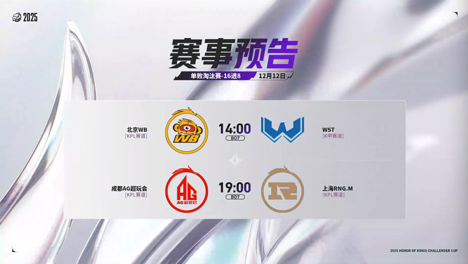 挑战者杯16进8来到了第三天的赛程。因为狼队和eStar已经早早的出局了,因此,AG超玩会的比赛就令人非常期待了!12日的赛程,终于有AG参加了!
