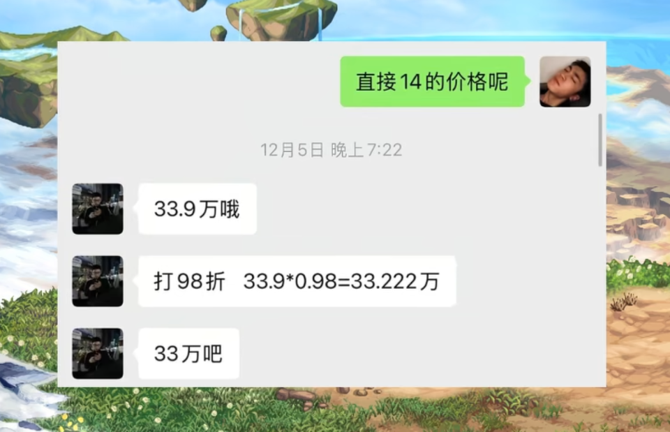 增幅吃瓜事件我整理了一下,兄弟们来看看谁对谁错。最开始呢,神秘土豪找人帮增幅14武器问了一圈下来,在圈里比较有名的工作室最开始的报价是33万,神秘土豪觉得贵,然后找到了宝哥公会主播001呢,报价30万。