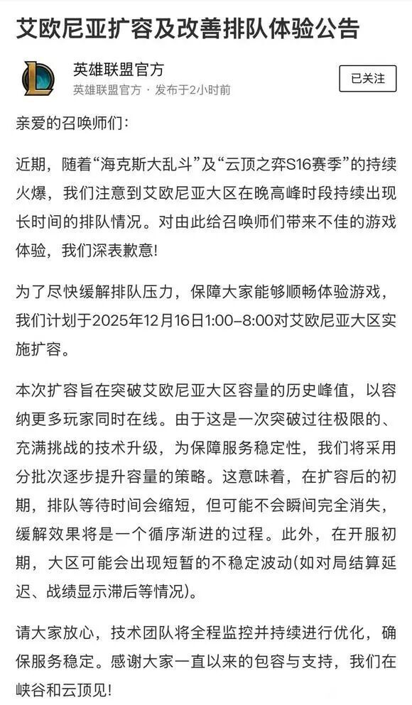 英雄联盟是真的火了!艾欧尼亚大区扩容