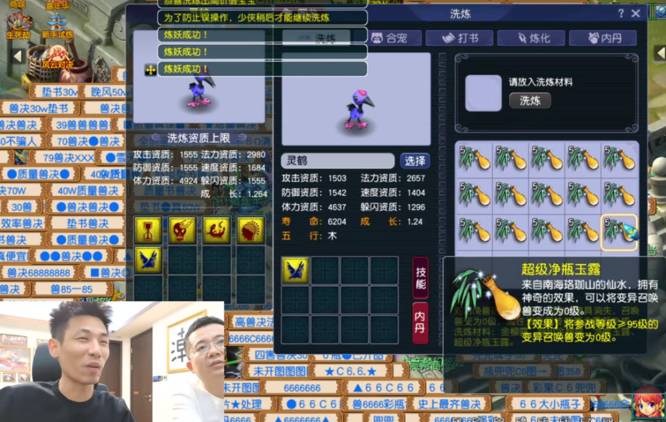 昨晚因鉴定资源不多,还未到十一点就已告罄。于是宝哥转而挑战起洗变异灵鹤的运气——没想到,好运这次来得格外痛快。仅仅三车下去,一只五技能变异灵鹤竟翩然而至。要知道,这类召唤兽市价接近三万,而宝哥前后只用了三千成本,这番手气,属实令人眼红!