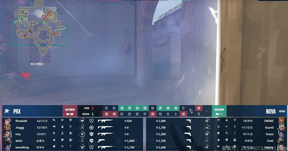 上半场开局,PRX 4B长前压赌错,NOVA直接冲A打掉大fo,Ezeir绕后配合点内的OBONE打掉PRX众人,NOVA拿下手枪局。NOVA开局果断的指挥与极硬的对枪,打出三连胜。第4回合PRX的ECO局直接五人B点抱团前压,通过协同补枪直接打掉NOVA五人完成翻盘。