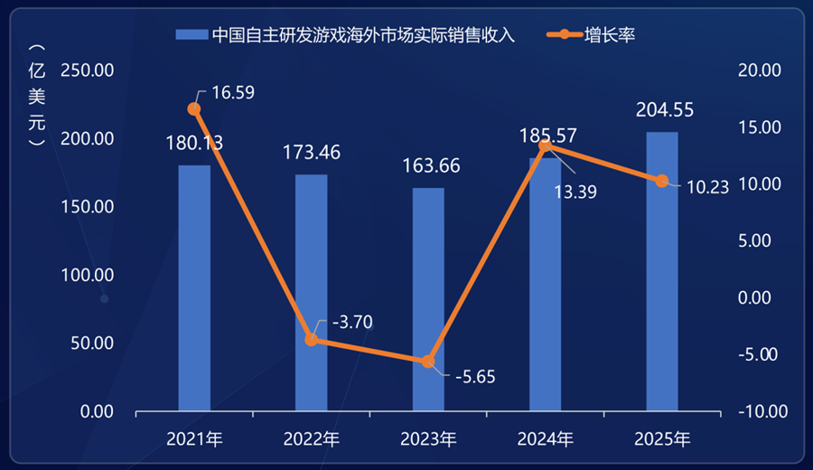 自研游戏海外市场实际销售收入达204.55亿美元