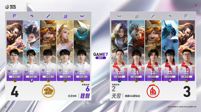 而更加有趣的是,成都AG超玩会上一次在正式比赛失利,也是对阵北京WB(2025 KPL夏季赛)。