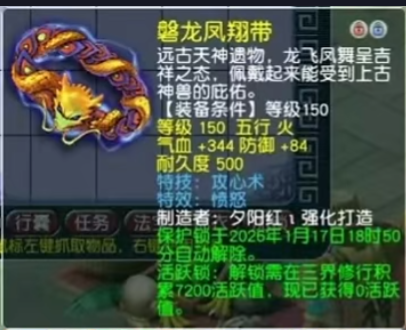 腰带部分也有惊喜:一条高属性不磨四海双蓝字腰带跃然眼前,妥妥的任务神器。