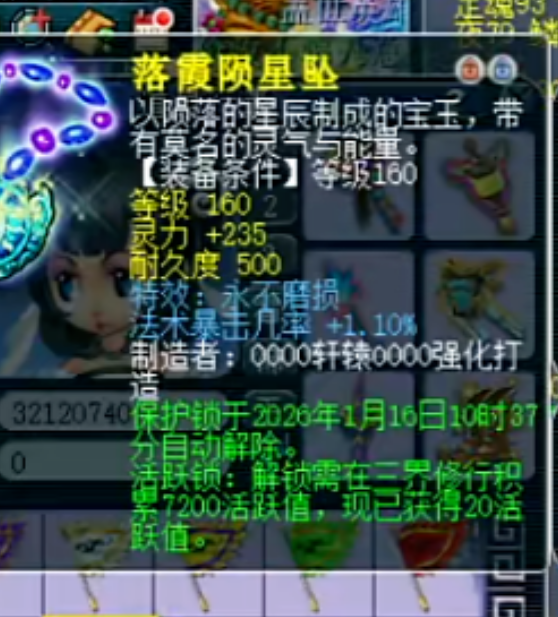 前段时间,有玩家在获得一件极品160级项链元身后,果断选择打造追梦。结果一发入魂,鉴定出一条初灵235、附带法暴几率1.1%的项链。