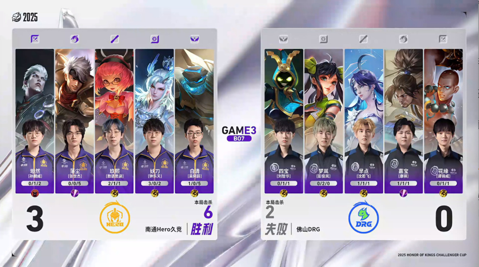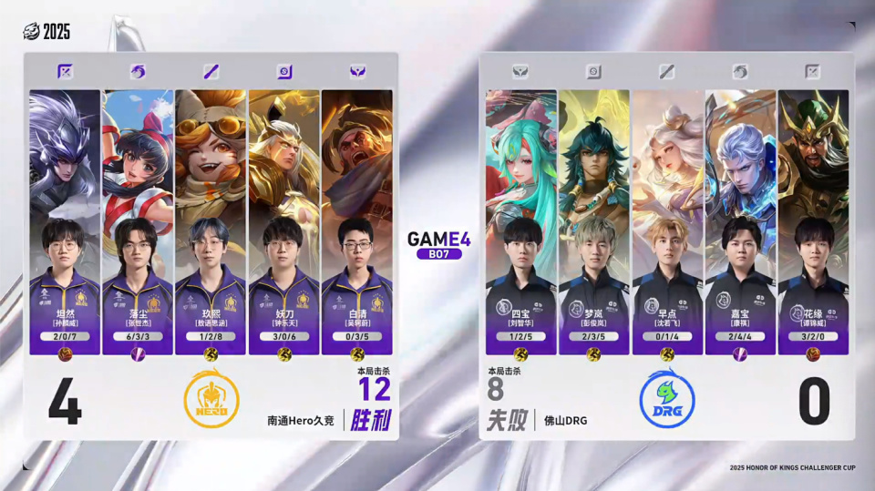 最后一局DRG终于优势了,本以为能追回一局。但暴君团战后羿大招命中铠,白清的苏烈大闪三个,落尘抢到了龙。在hero中辅先倒的情况下,坦然的马超一打三切死了苍,继续拉扯,等娜可露露支援到位再杀嫦娥,花缘也走不掉了,反倒是hero打了一波一换四。