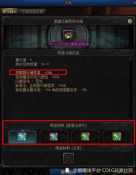 [试炼]司南100%掉落辟邪玉和玉荣,不会掉落司南。司南分为可交易与账号绑定类型,