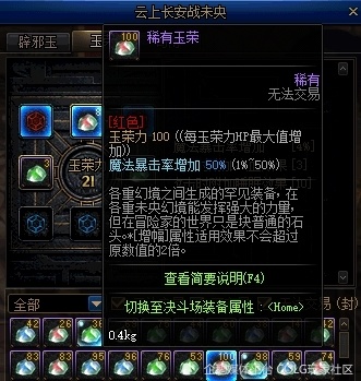 (即你可以将玉荣看作是未央专属装备,玉荣力看作未央专属名望)玩家最多可以装备3个红色,2个绿色和3个蓝色玉荣,由于角色装备属性的提升,玉荣属性则变得可有可无,现在主要看重的是玉荣力,达到入场要求即可。玉荣仅在未央幻境地下城中掉落,只会掉落稀有单属性的