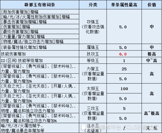 (俗称洗票)辟邪玉属性中,仅以下词条为有效词条,对应价格可自行参考拍卖行同类型属性辟邪玉的价位。
