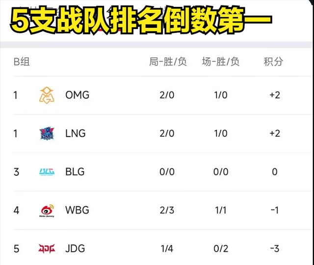 随着JDG被LNG以零封击败,目前JDG战队陷入了极为尴尬的局面,截至目前,JDG仅收获0胜2负的积分。要知道,本届德杯小组赛的晋级规则为,五支战队排名前三的队伍晋级。然而,JDG在这五支战队中排名垫底,位于B组的倒数第一,未来JDG还要跟积分第一的OMG和公认的最强战队BLG打BO3,不少观众分析,JDG未来但凡输掉一局比赛,那么JDG就会提前被淘汰。