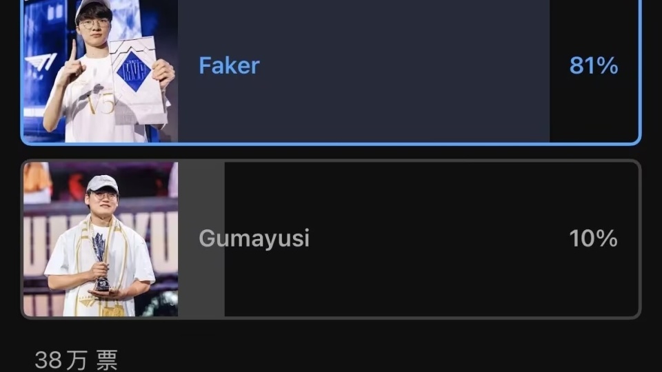 LOL官方在近日发起投票,让观众们票选出,近四年最重要的FMVP,获得提名的选手,都是世界赛FMVP获得者,其中包括Kingen、Zeus、Faker、Gumayusi,有老李参与的投票,结果肯定是毫无悬念的,Faker以81%的得票率,碾压其他选手,成为LOL公认的,近四年最重要的FMVP。