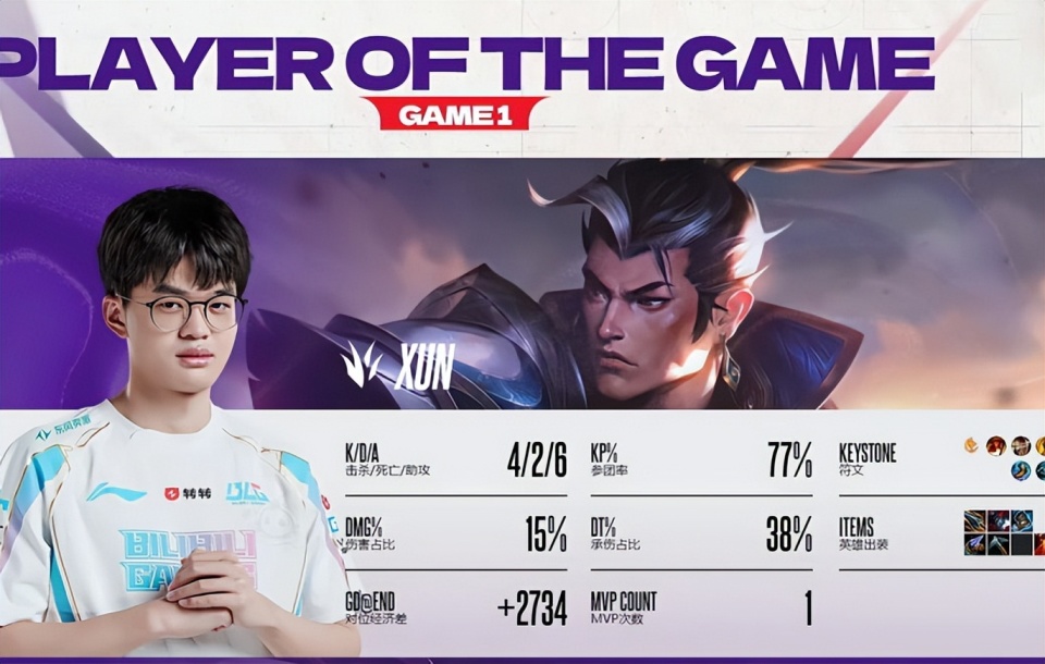 另外,Xun也用赵信拿到了MVP,这个回归后的首秀,也很重要,BLG换来换去还是Xun的打野最适合。