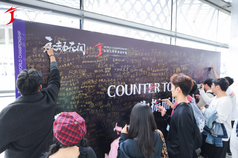 在此之外,不少玩家也在现场自发交换起了“无料”,或者在“为振而战”主题板上签名留念,记录今年的劫杯之旅。