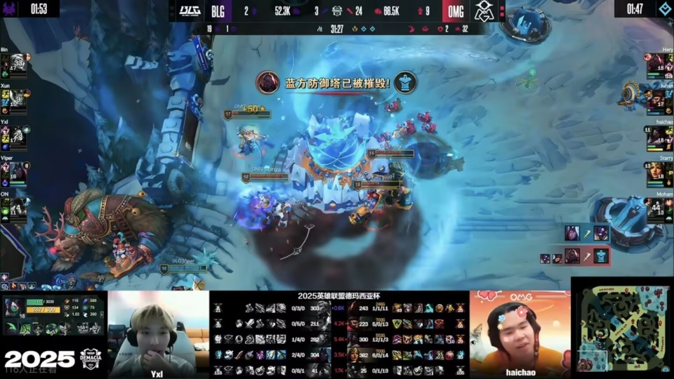 BLG跟微博也有点像,第一把都把门牙塔推了,结果龙魂团被团灭,第二把更是被OMG打成人机,ON刷新战绩下限,连续两局0-8反向超神,看完首秀的时候,个人曾夸过BLG的纪律性,这里得给大家道个歉,对不起我话说早了,BLG有纪律性是假象,打OMG这把,还是那个老样子。