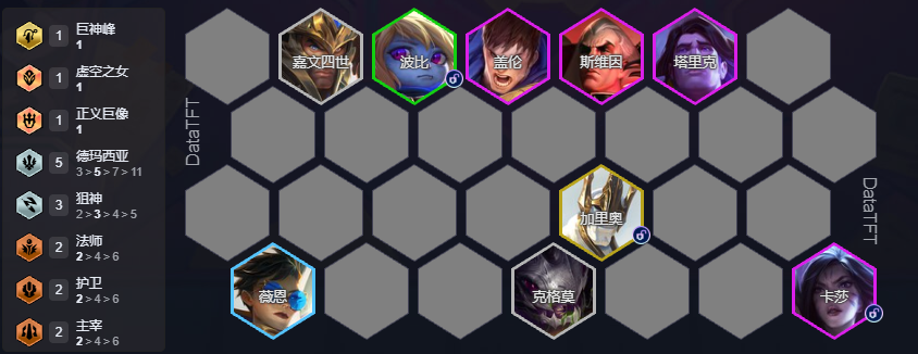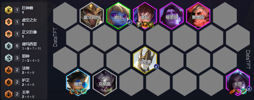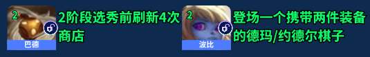 这套阵容就直接使用德玛西亚过渡即可,野怪回合掉装备可以直接尝试合1.5件装解锁波比,优先避免消耗反曲弓和斗篷就行;2-3D4下留德玛的牌顺便解锁巴德